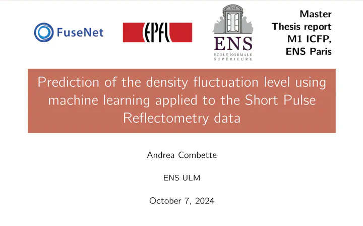 This seminar is devoted to investigation of turbulence characteristics in the TCV tokamak using Short Pulse Reflectometry diagnostic and Machine Learning approach, focusing on Trapped Electron Mode (TEM) instabilities and their impact on radial transport. A 1D model initially provided insights, but a 2D model was developed to better account for curvature, incidence angle, and scattering effects. Using extensive CUWA code simulations, datasets were generated for both Gaussian and power spectrum turbulence structures accounting for various simulation parameters like the position of the cut-off the structures of turbulences. The 2D model achieved R2 scores of 0.92 for Gaussian and 0.89 for power spectrum tests, outperforming deeper neural networks. It effectively managed non-linear effects, delay characteristics, and cut-off layer shifts.